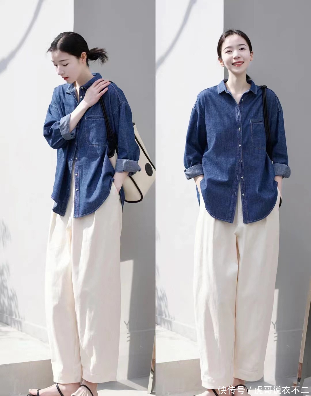 皇冠信用怎么开账户一些少年感相比强的女性,就不错试试图中这种搭配,以牛仔衬衫配合阔腿裤衣着,宽松的版型不会勾画出生材柔好意思的弧线,亦然隆起中性风度的要害。
