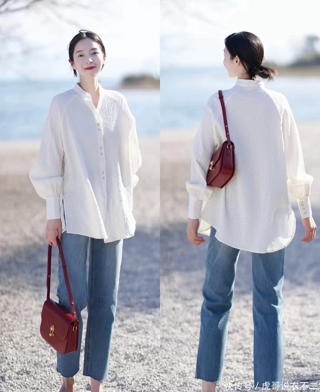 非论在衣着哪一策画的衬衫时,打开领口的穿法,齐会在视觉上提高气质感,这是因为脖子长度是影响外形的一个紧迫要素,颈部线条看起来越优好意思,就显得姿态更大方舒展。