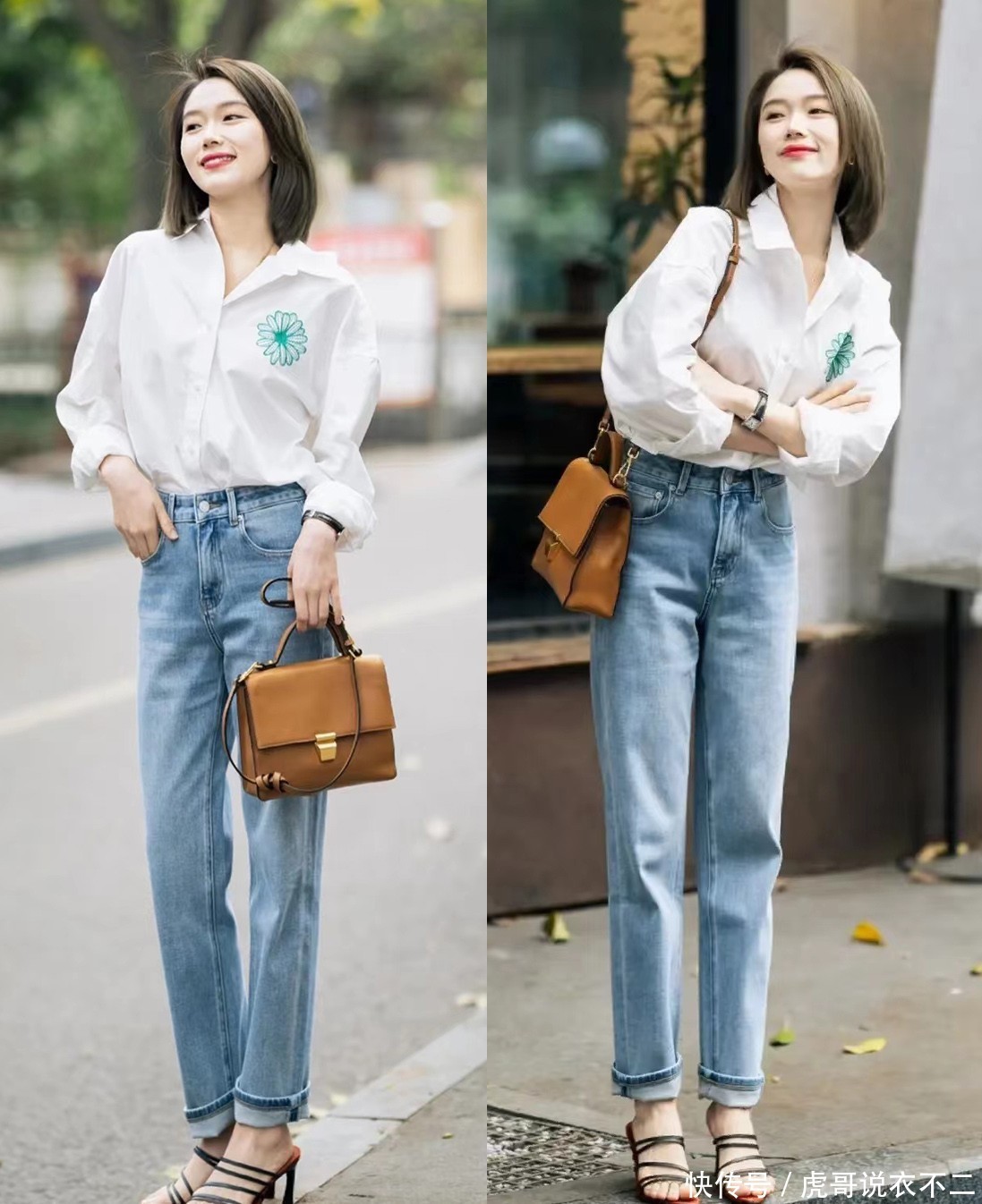 博彩平台新手指南因此在搭配时最佳记着一个小妙技,那即是“宽窄齐集”,像上图是白衬衫与修身牛仔裤的齐集,版型的对比彰显出了利落感。