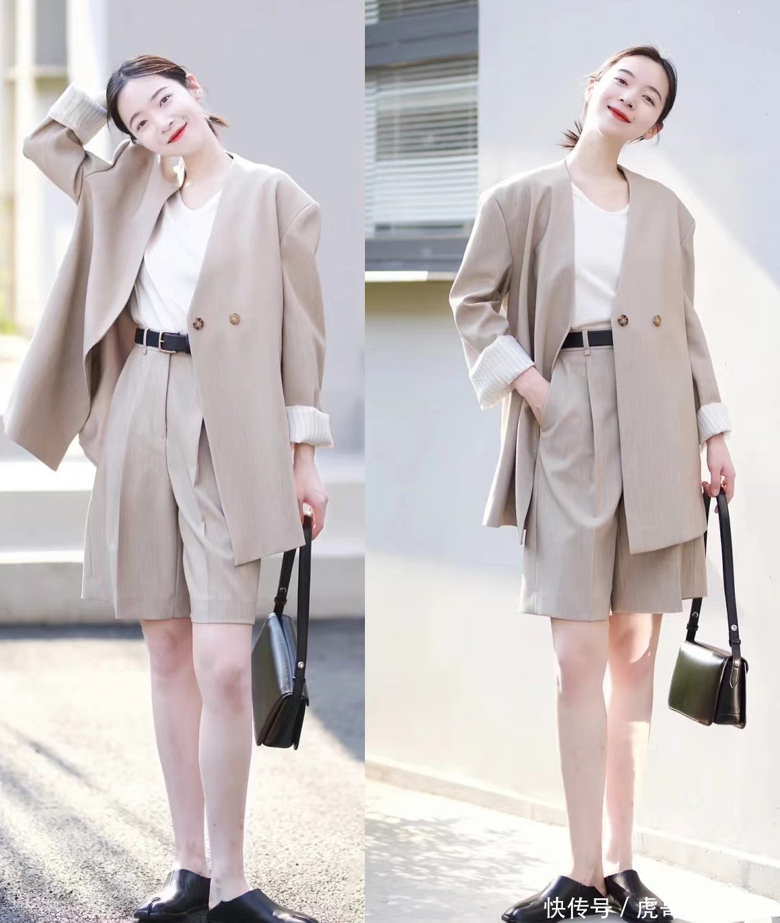 敬佩小西装与长裤、半身裙的搭配齐是相比常见的,讹诈频率相比高,但这里主淌若先容另一种穿法,那即是将西服外衣与五分裤进行搭配,隆起帅气失业的气味。