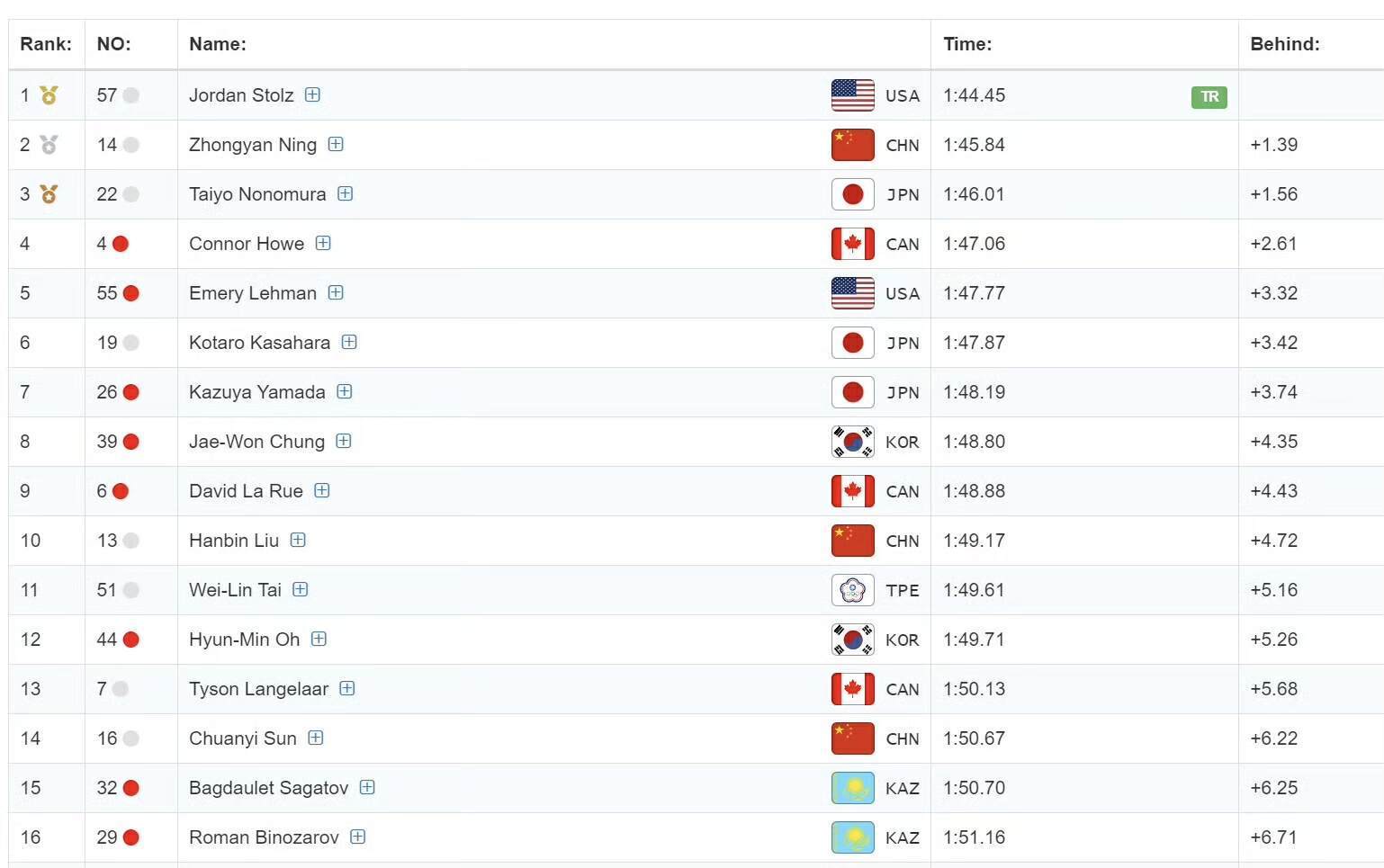 首个决赛日,中国队由宁忠岩、韩梅、廉子文等主力出战。须眉团体追赶景观,中国队祭出由刘斌、邓智瀚、廉子文构成的威望,最终,三位选手以1分19秒780的成绩完赛。好意思国队的情景愈加出色,他们滑出了1分19秒430的好成绩,以0.35秒的上风力压中国队夺冠,加拿大队排行第三。赛后,冰迷们都为中国队摘银的成果深感缺憾。